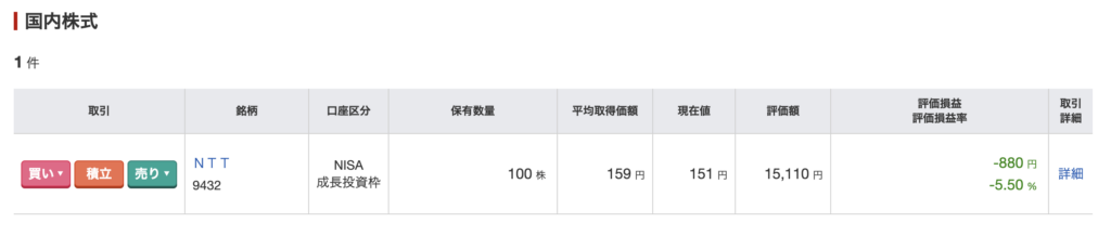 NISAの成長投資枠では個別の株も買えるそうなので、今年の年初に(2026/01/13)、NTT株を買ってみました。